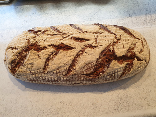 Rustikales 6-Korn-Urgetreidebrot mit gelockertem Natursauerteig. Kräftiger Geschmack.